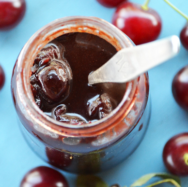 Cseresznye lekvár egy kicsit újra gondolva.  Étcsoki és mandula aroma kombinálásával.